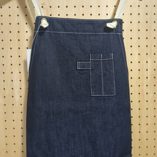 大きなフラップポケットと、切り替えが特徴のロングエプロン。